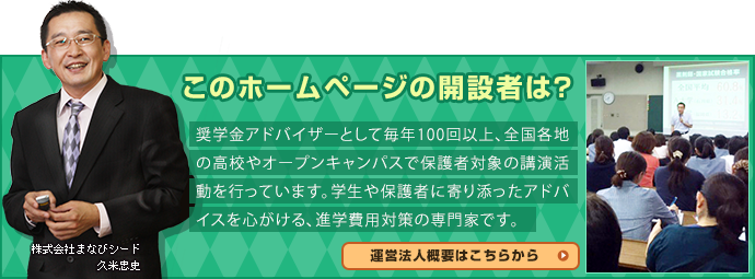 このホームページは主に保護者に向けて奨学金の仕組みとポイント、注意点を発信しています。 2009年の開設から年々アクセス数が上昇するとともに、利用者も日本全国に広がっています。 受験生の保護者に対して丁寧に奨学金情報を伝える手段として、当方の活動をご活用いただければと願っています。