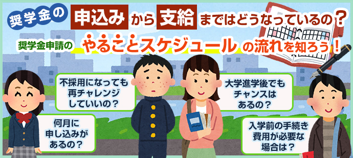 日本学生支援機構奨学金の申請から支給開始までの流れを解説しています。