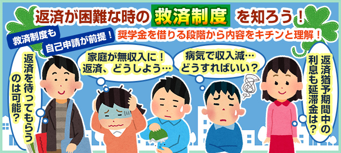 ただし、これらの救済制度も自己申請が前提となるので、奨学金を借りる段階から内容をキチンと理解しておくことが大切です。
