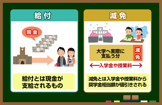 それに対して、減免とは入学金や授業料から奨学金相当額が値引きされると理解してください。