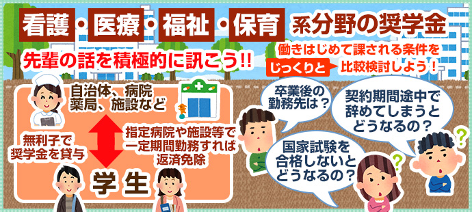 医療・福祉分野の奨学金は、金銭面では有難い制度ですが、卒業後の勤務先が限定されてしまうという制約があります。