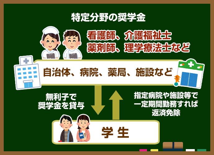これらの奨学金は、無利子の奨学金を在学中に貸付け、卒業後に指定された病院や施設で一定期間働くことで返済が免除される仕組みになっています。