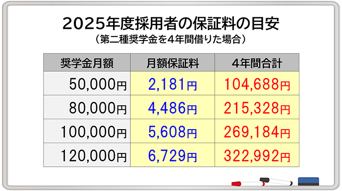 一方、機関保証では、連帯保証人と保証人の選定は必要ありませんが、奨学金の貸与期間中に毎月保証料を支払わなければなりません。月々の保証料の支払い方法は、振込まれる奨学金から天引きされて支払うという仕組みです。保証料額は奨学金の貸与額と連動するので、奨学金の額が大きくなるほど支払う保証料も高くなります。
